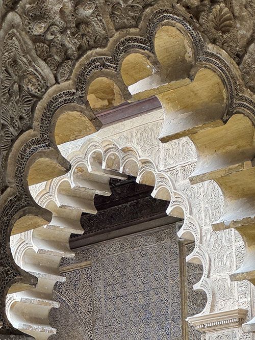 We reach the Patio de las Doncellas, the heart of the palace. The long reflecting pool lies perfectly centred. Orange trees flank the patio. The stucco shows geometric patterns that seem almost endless. “This patio was once buried under a layer of earth and rubble,” Dori says. “It was rediscovered and restored in the 19th century. But only after the major restoration in the 1990s did the palace appear as it was originally designed.”