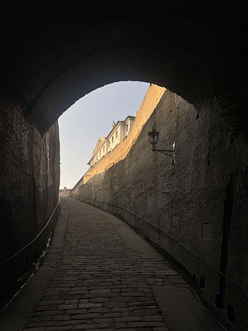 After a break in the fortress restaurant we explore the artillery platforms with their historic cannons. The Scherenhaus from 1550 fascinates us as the oldest surviving building, once the prison of the alchemist Böttger. The enormous provisions store, capable of supplying food for 4,000 people, is equally impressive.
