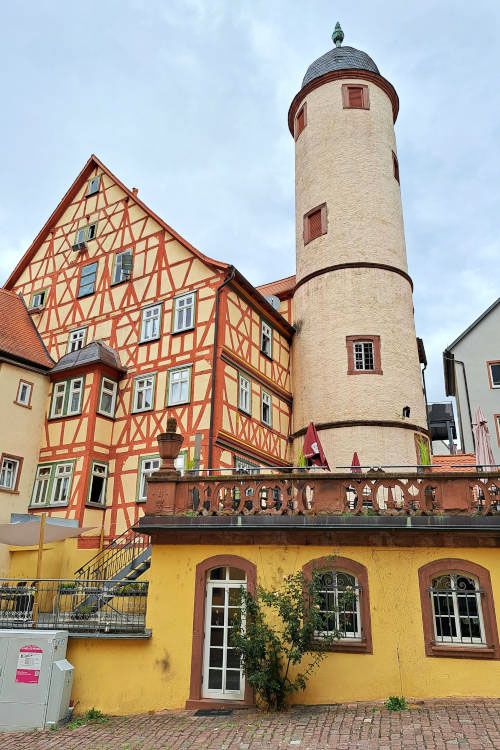 The Pointed Tower, or Spitzer Turm, is perhaps Wertheim’s most iconic building. It stands prominently on the edge of the town centre. Interestingly, it leans quite noticeably—more than the famous tower in Pisa. The tilt was apparent immediately after construction and was never fully corrected, giving the tower a unique character. Built in the thirteenth century, it was part of the original city wall.